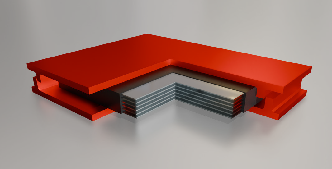 All’interno dell’elastomero sono inserite lamiere in acciaio, perfettamente aderenti grazie a un processo di vulcanizzazione. Queste lamiere, completamente inglobate nella gomma, risultano protette da agenti atmosferici e corrosione.